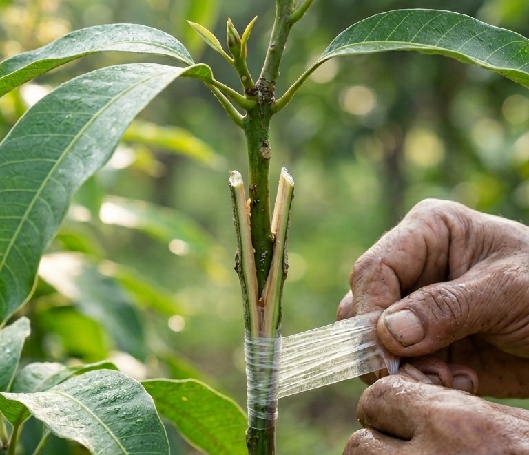 3. การรักษาความชื้น หลังจากเสียบเสร็จ ควรใช้ถุงพลาสติกใสครอบยอดไว้เพื่อสร้างสภาวะเรือนกระจกขนาดเล็ก ช่วยรักษาความชื้นไม่ให้ยอดพันธุ์ดีคายน้ำจนเหี่ยว