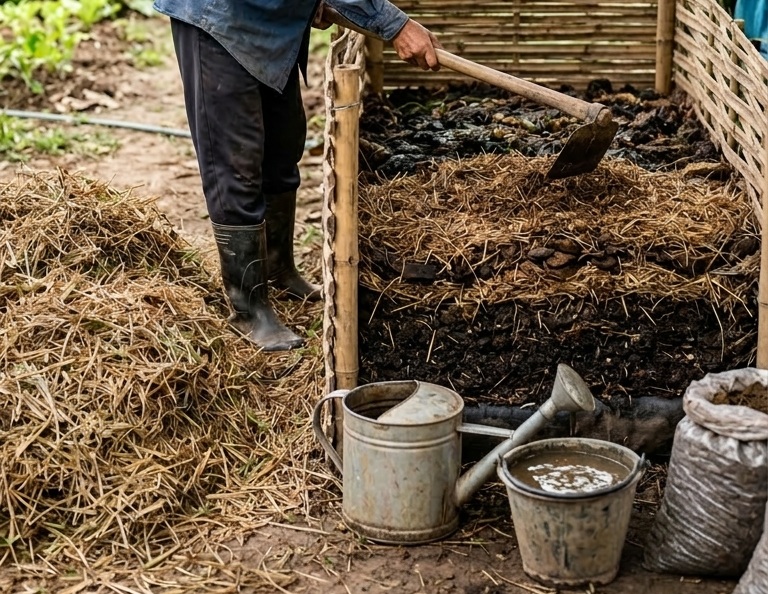 ตัดหญ้าถากสวนเสร็จแล้ว อย่าเพิ่งกวาดไปเผาทิ้งให้เสียของครับ! เพราะในหญ้าแห้งกองนั้น ยังมีธาตุอาหารสำคัญที่พืชต้องการอยู่ครบ การเปลี่ยนหญ้าแห้งให้กลายเป็นอินทรียวัตถุ คือหัวใจสำคัญของการทำเกษตรที่ช่วยลดต้นทุนค่าปุ๋ย และฟื้นฟูดินที่แข็งกระด้างให้กลับมามีชีวิตอีกครั้ง วันนี้เกษตรสัญจรจะพามาดูขั้นตอนการเปลี่ยนเศษหญ้าในสวน ให้กลายเป็นอินทรียวัตถุบำรุงดินแบบละเอียด ทำตามได้ทันทีครับ