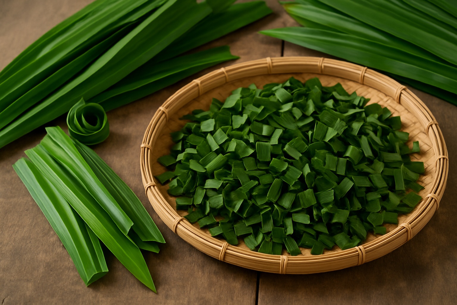 เริ่มจากการเลือกใบเตยที่มีอายุประมาณ 2.5–3 เดือน ซึ่งเป็นช่วงที่ใบโตเต็มที่ สีเขียวสด ไม่เหลือง ไม่เหี่ยว และไม่มีร่องรอยของโรคพืชหรือแมลงทำลาย เพราะวัตถุดิบที่ดีจะช่วยให้ได้ใบเตยแห้งที่หอม สีสวย และเก็บได้นาน
