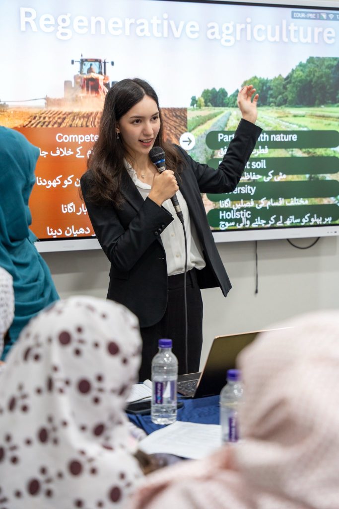 ปีที่ผ่านมา น้องเจน ไม่ได้อยู่แค่ในฟาร์มที่ไทยแต่โกอินเตอร์ไปถึง ปากีสถาน เพราะสถานทูตเชิญให้ไปช่วยสอนชาวบ้านในพื้นที่แห้งแล้งทำเกษตร น้องเจนบอกว่าถึงจะคุยกันคนละภาษา แต่เห็นแววตาคนที่นั่นที่ตั้งใจเรียนแล้วหายเหนื่อยเลยครับ แถมชาวบ้านยังประทับใจเด็ดดอกไม้มามอบให้ ทำกำไลมาฝาก เป็นภาพที่น่ารักสุดๆ