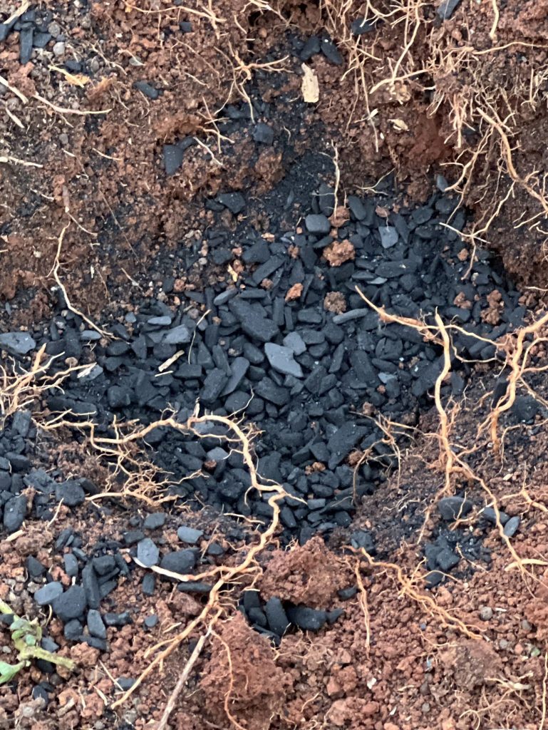 สุดท้ายคือเทคนิค การใช้รองก้นหลุม ก่อนลงปลูกพืชลงดิน ไม่ว่าจะเป็นไม้ป่าหรือไม้ผลต้นใหญ่ การเอาไบโอชาร์หมักไปรองไว้ที่ก้นหลุมคือการสร้าง “ธนาคารสารอาหาร” ให้กับพืชตั้งแต่เริ่มตั้งไข่ รูพรุนของถ่านจะดึงดูดให้รากฝอยวิ่งเข้าหาเพื่อไปดูดกินน้ำและจุลินทรีย์ที่อาศัยอยู่รอบก้อนถ่าน ทำให้พืชตั้งตัวได้เร็วและแข็งแรงกว่าการปลูกลงดินเดิมๆ ทั่วไป และที่เจ๋งที่สุดคือคาร์บอนพวกนี้จะอยู่ก้นหลุมไปได้นานนับพันปี เป็นการปรับปรุงโครงสร้างดินชั้นล่างให้สมบูรณ์แบบถาวร ไม่ต้องมาขุดแก้ดินกันอีกเลยในอนาคต