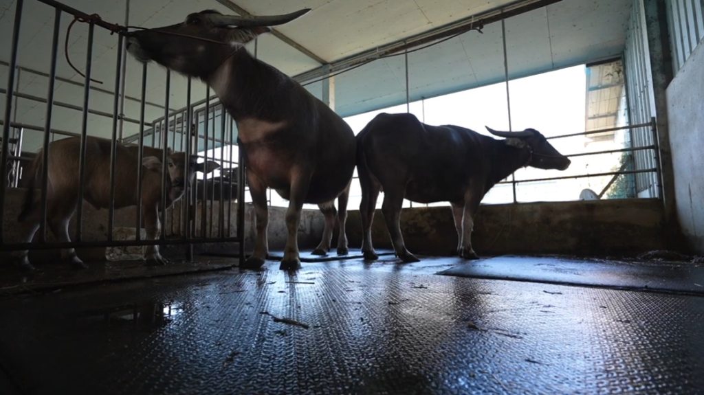 ฟาร์มใช้ระบบการเลี้ยงแบบฟาร์มปิด ซึ่งช่วยให้การจัดการ ดูแล และรักษาความสะอาดเป็นไปอย่างมีประสิทธิภาพ อย่างไรก็ตามการเลี้ยงควายในคอกปูนอาจส่งผลกระทบต่อสุขภาพของกีบของควาย เนื่องจากพื้นแข็งทำให้เล็บสึกและกีบบาง เพื่อแก้ปัญหานี้ทางฟาร์มจึงนำแผ่นยางมาปูพื้นทั้งหมด เพื่อลดแรงกระแทกและเพิ่มความสบายให้กับควาย
