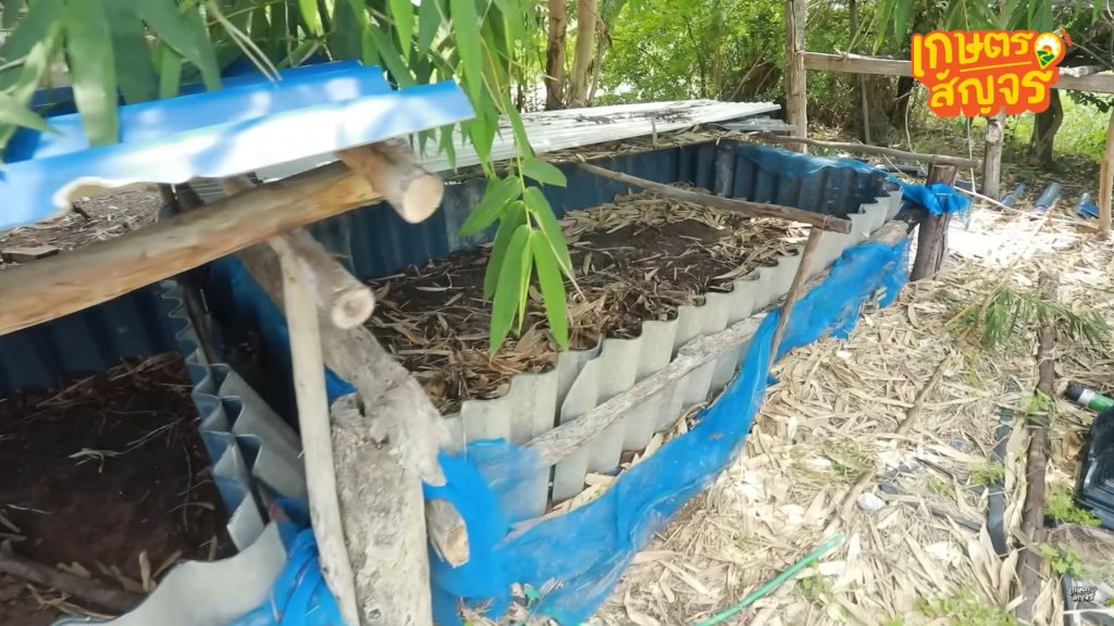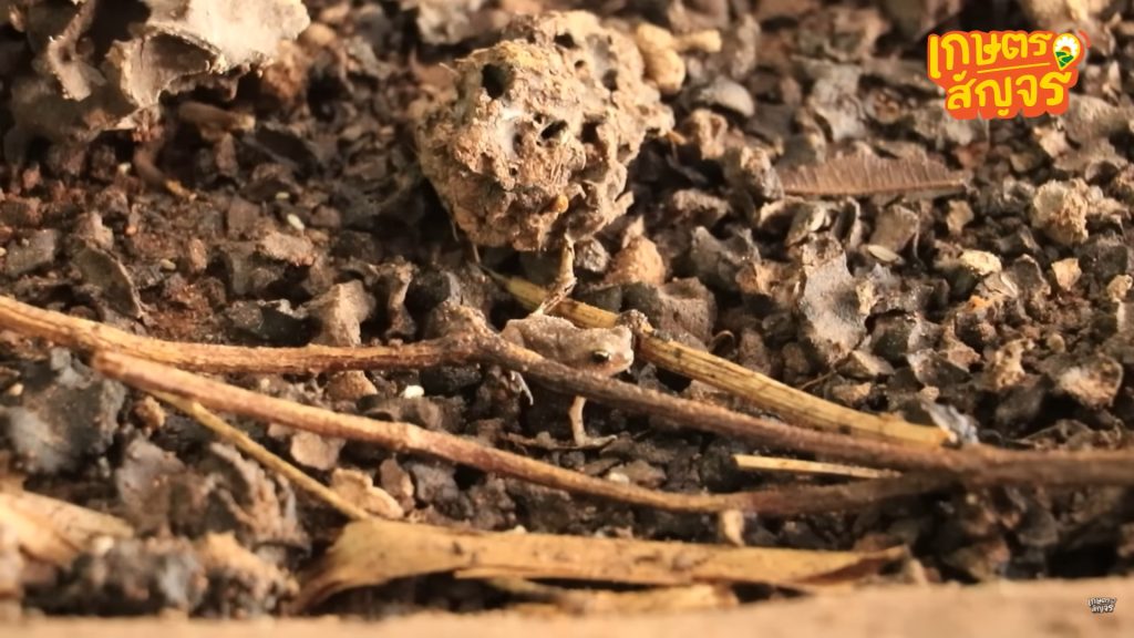 - ใช้กระเบื้องหรือสังกะสี ล้อมรอบพื้นที่เลี้ยง เพื่อป้องกันลูกอึ่งกระโดดหนี