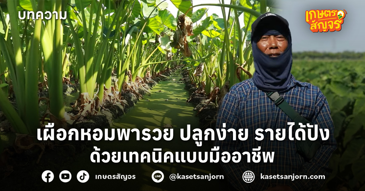 พี่สุทัศน์ เฉลิมพันธ์ เกษตรกรผู้มีประสบการณ์ปลูกเผือกหอมกว่า 28 ปี ที่อำเภอบ้านหมอ จังหวัดสระบุรี เลือกปลูก เผือกน้ำ แทนเผือกบก ซึ่งเป็นพันธุ์ที่ตลาดต้องการสูง แต่เกษตรกรยังผลิตได้ไม่เพียงพอ พี่สุทัศน์จึงใช้วิธีหมุนเวียนการปลูกเผือกหอมสลับกับข้าว เพื่อให้ดินฟื้นตัวและได้ผลผลิตที่มีคุณภาพ ปัจจุบันเผือกหอมจากที่นี่ไม่เพียงแค่ขายดีในประเทศ แต่ยังมีความต้องการสูงจากตลาดต่างประเทศด้วย