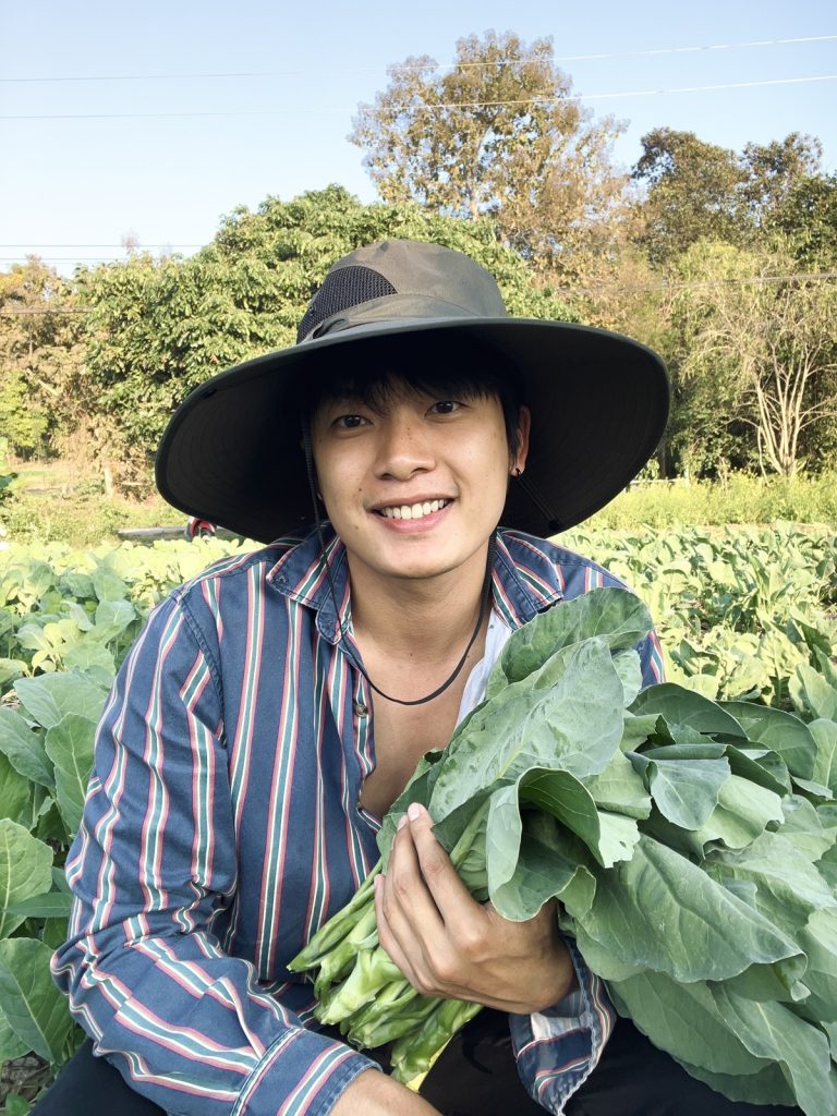 “เกมส์ – มนัสชัย ทาตื้อ” หนุ่มเชียงรายรุ่นใหม่ไฟแรง เริ่มต้นทำเกษตรจากจังหวะชีวิตช่วงโควิด เมื่อบริษัทเปิดให้ทำงานแบบ Work from Home จึงตัดสินใจกลับบ้านเกิดที่ อ.พาน จ.เชียงราย ใช้เวลาว่างระหว่างทำงานประจำ ปลูกผักเป็นงานอดิเรก จากความตั้งใจเล็ก ๆ เพื่อให้ครอบครัวได้กินผักปลอดสาร เกมส์เลือกปลูกผักพื้นบ้านและผักหลากหลายชนิดในระบบเกษตรอินทรีย์ โดยยึดหลักปลอดสารเคมี และค่อย ๆ พัฒนาแนวคิดเกษตรพึ่งตนเอง จนกลายเป็นความสุขเล็ก ๆ ที่เติบโตขึ้นทุกวัน