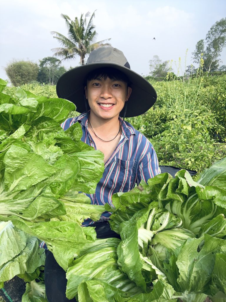ผักที่ปลูกมีหลากหลายชนิด เช่น ยี่หร่า ต้นหอม ผักชีฝรั่ง รวมถึงพืชผักพื้นบ้านและสายพันธุ์อื่น ๆ อีกมากมาย แม้รูปลักษณ์อาจไม่สวยงามเหมือนในตลาด แต่เต็มไปด้วยความตั้งใจและปลอดภัยจากสารเคมี เกมส์เน้นการปลูกหมุนเวียนให้มีผักกินได้ตลอดทั้งปี ใช้จุลินทรีย์สังเคราะห์แสงและปุ๋ยหมักที่ทำเองเพื่อบำรุงดินและพืชผัก นอกจากนี้ยังมีผลไม้หลายชนิดปลูกไว้สำหรับบริโภคในครอบครัว เป้าหมายของเขาไม่ใช่แค่การขายผัก แต่คือการแบ่งปันวิถีชีวิตที่เชื่อว่า “ถ้าเราปลูกผักด้วยความตั้งใจ คนที่เห็นก็จะสัมผัสได้” และนั่นแหละคือตลาดที่แท้จริง